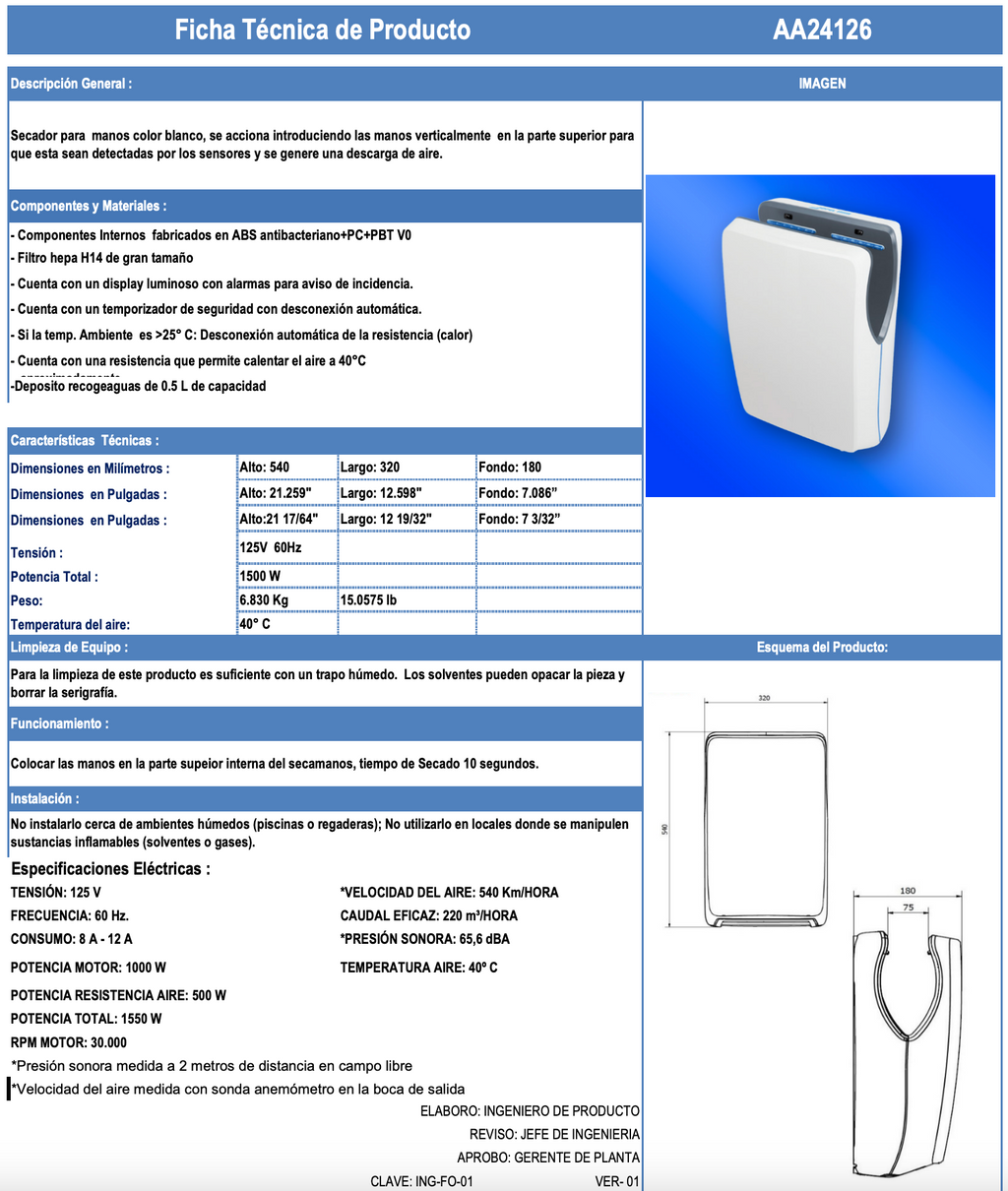 SECADOR DE MANOS ALTO RENDIMIENTO AVE BLANCO AA19126