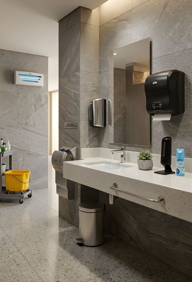 Moderniza tus baños con secadores de manos de alta velocidad. Los modelos Power Inox y Power+ ofrecen un secado ultrarrápido con bajo consumo energético