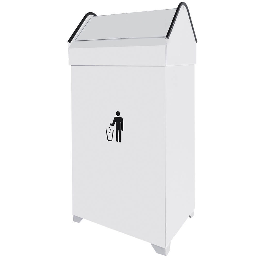 Basurero con tapa balancín, de ahí el nombre. Orificios a los costados de la tapa para desmontarla. Protecciones laterales en negro.