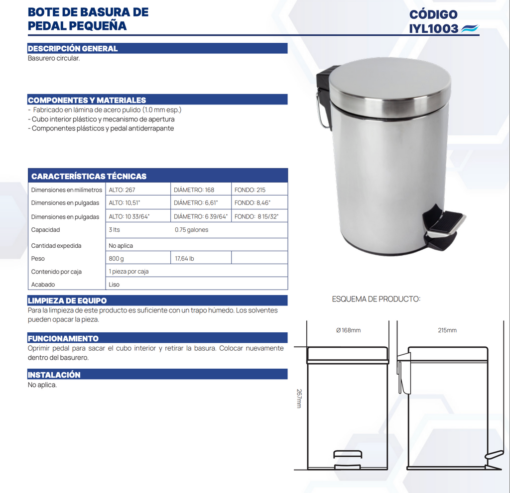 BOTE DE BASURA DE PEDAL PEQUEÑO IYL1003