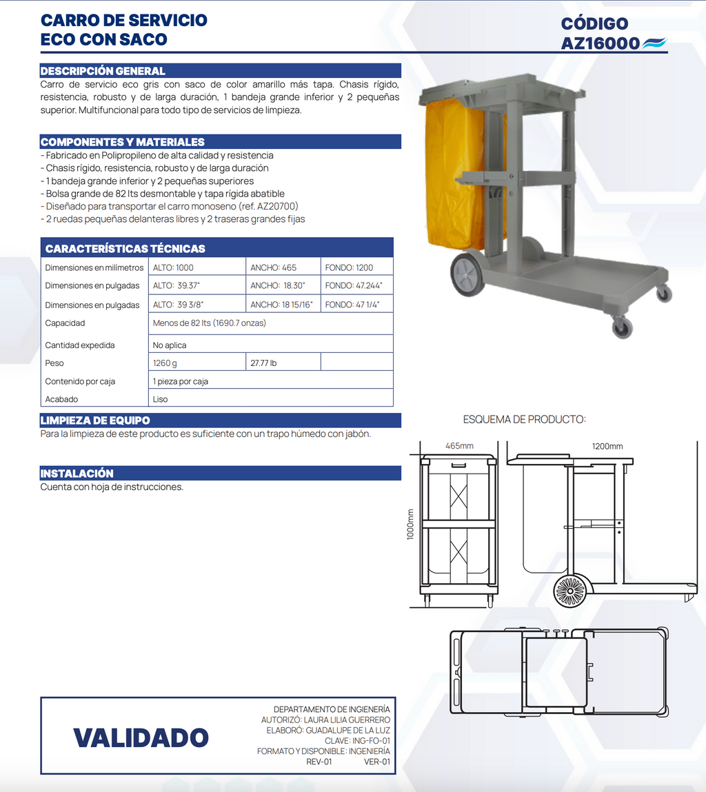 CARRO DE SERVICIO ECO CON SACO AZ16000