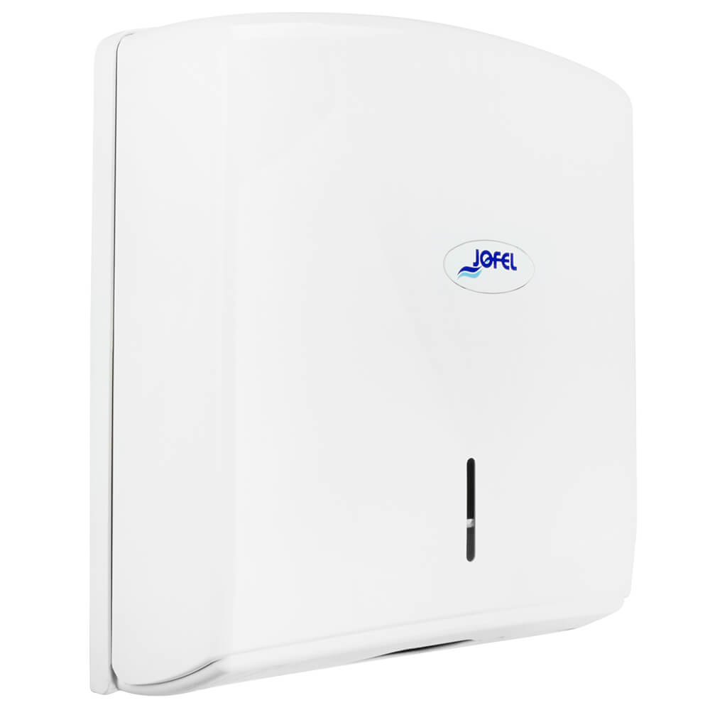 Fabricado en plástico ABS color blanco y capacidad para 600 toallas.