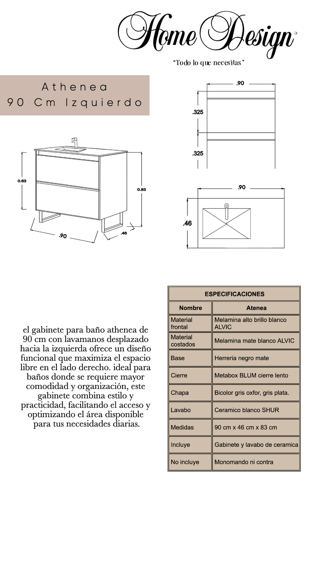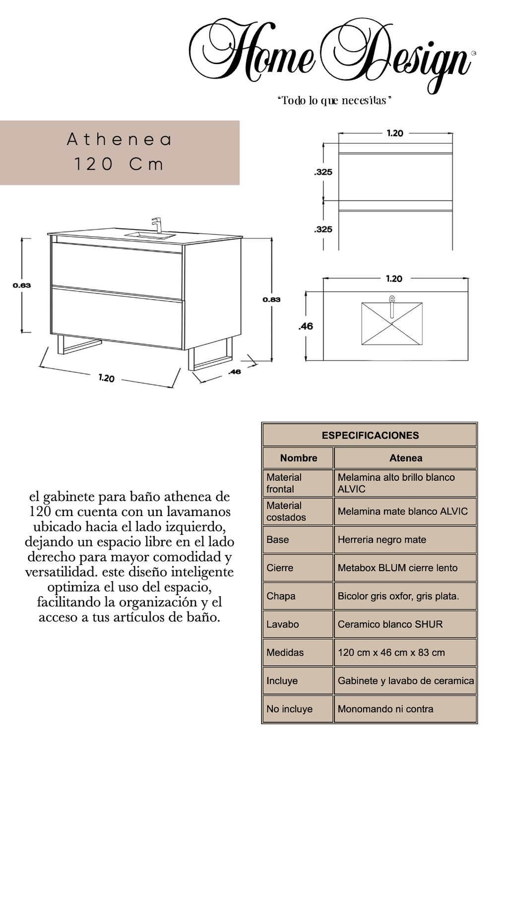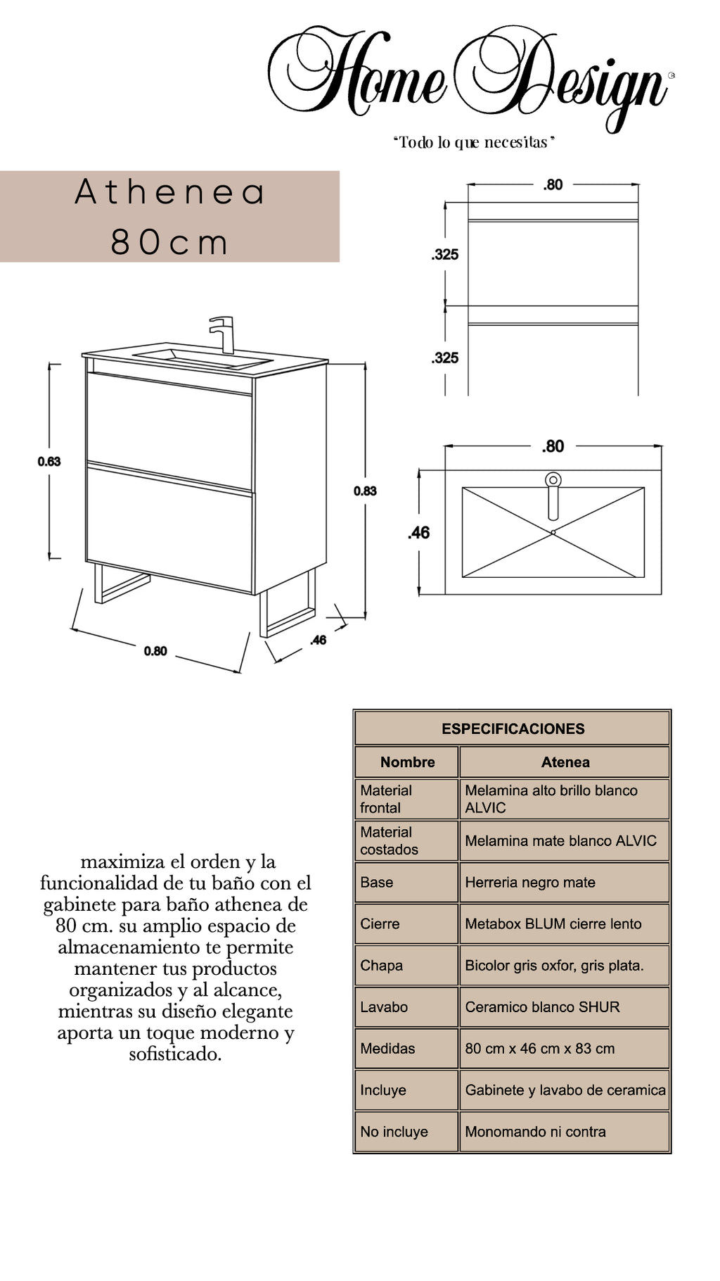Este gabinete para baño ATHENEA es una excelente opción para mantener tu baño organizado y elegante. Con su amplio espacio de almacenamiento y diseño moderno, podrás guardar tus artículos de manera eficiente. Fabricado con materiales de alta calidad, garantiza resistencia y durabilidad. ¡Haz de tu baño un espacio funcional y estético con el gabinete ATHENEA!