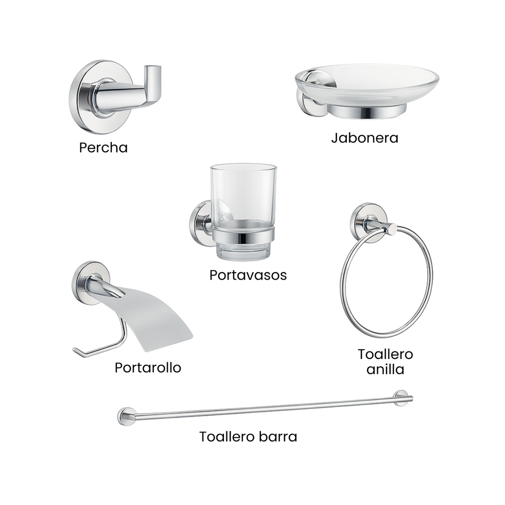 Transforma tu baño en un espacio de lujo con el Kit Accesorios para Baño Cromo Zeta de 6 piezas. Este conjunto integral combina acabados cromados de alta calidad con un diseño moderno que eleva la estética de cualquier baño. Cada pieza está diseñada para trabajar en perfecta armonía, ofreciendo tanto funcionalidad como sofisticación. Perfecto para quienes valoran la coherencia visual y la durabilidad en sus espacios. Con este kit, lograrás un baño completamente coordinado que refleja tu estilo personal y demuestra tu compromiso con la excelencia en el diseño de interiores.