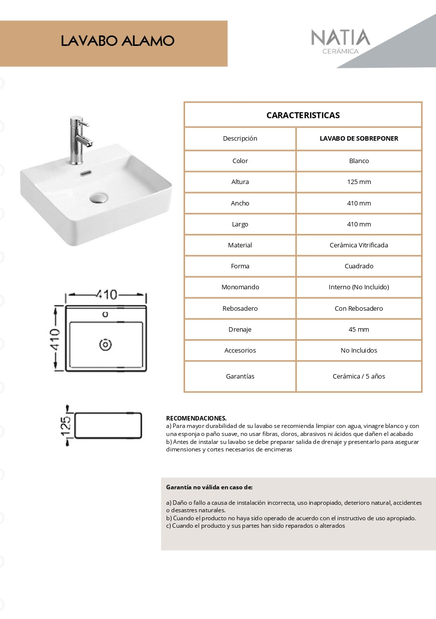 Introduce estilo y funcionalidad con el lavabo de sobreponer Alamo en color blanco. Fabricado en cerámica vitrificada con forma cuadrada y rebosadero integrado, este lavabo combina diseño moderno con practicidad.