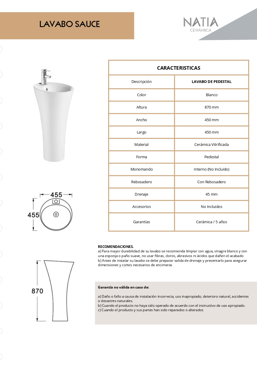 Embellece tu baño con el lavabo de pedestal Sauce, una pieza elegante en color blanco que destaca por su calidad y diseño clásico. Fabricado en cerámica vitrificada y equipado con rebosadero, este lavabo no solo añade un toque de sofisticación, sino que también ofrece funcionalidad y durabilidad.