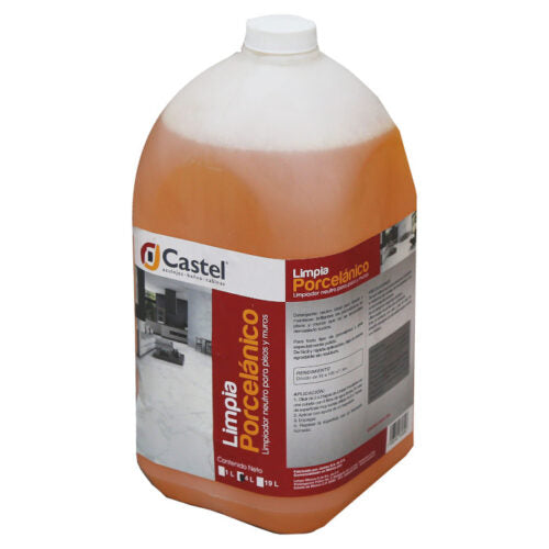 LIMPIA PORCELANICO CASTEL 1 LT, 4LT Y 200 LT ofrece una limpieza efectiva y delicada para pisos de porcelánico, manteniéndolos relucientes y protegidos. Su fórmula especial elimina suciedad y manchas sin dañar la superficie, facilitando el cuidado diario de tus espacios. Ideal para conservar la belleza y durabilidad de tu porcelánico con cada uso.