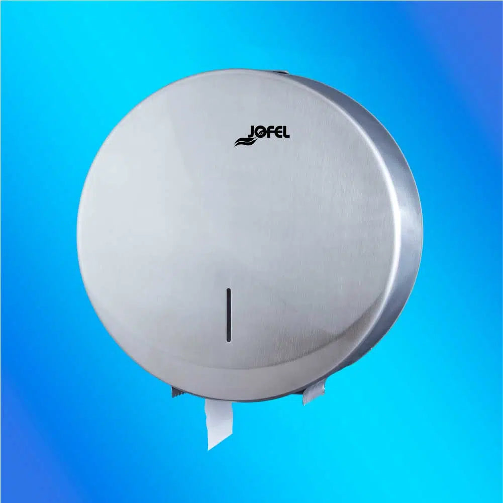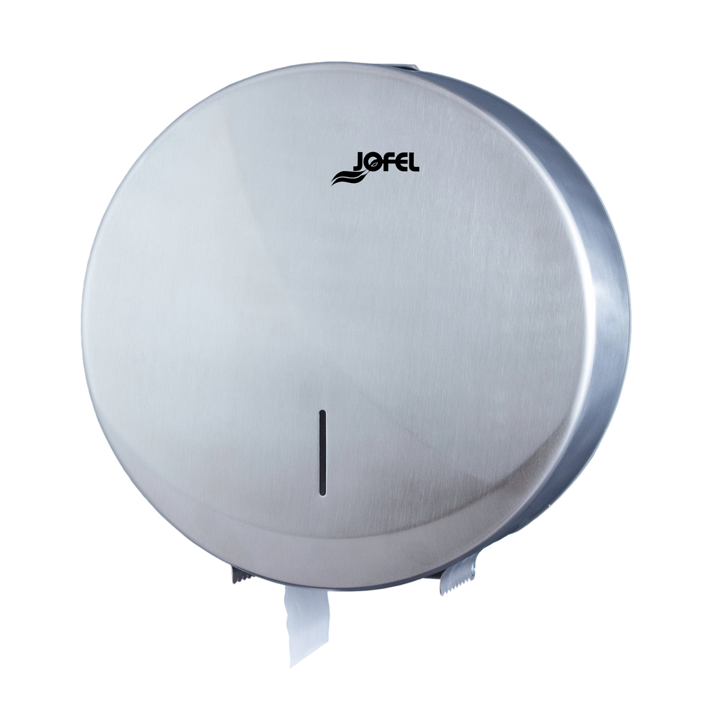 Dispensador industrial de papel rollo de acero inoxidable satinado, diseñado para espacios de alto tráfico. Fabricado con cerradura de seguridad, visor frontal y protección antivandálica. Admite rollos de hasta 400 metros con diámetro máximo de 260 mm, compatible con mandriles de 55 mm. Frontal completamente abatible para carga fácil y rápida. Ideal para baños públicos, colectividades y establecimientos comerciales. Construcción robusta y resistente que garantiza durabilidad. Fácil de limpiar y mantener. Se integra perfectamente en cualquier decoración y ambiente.