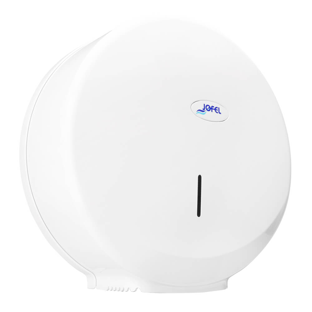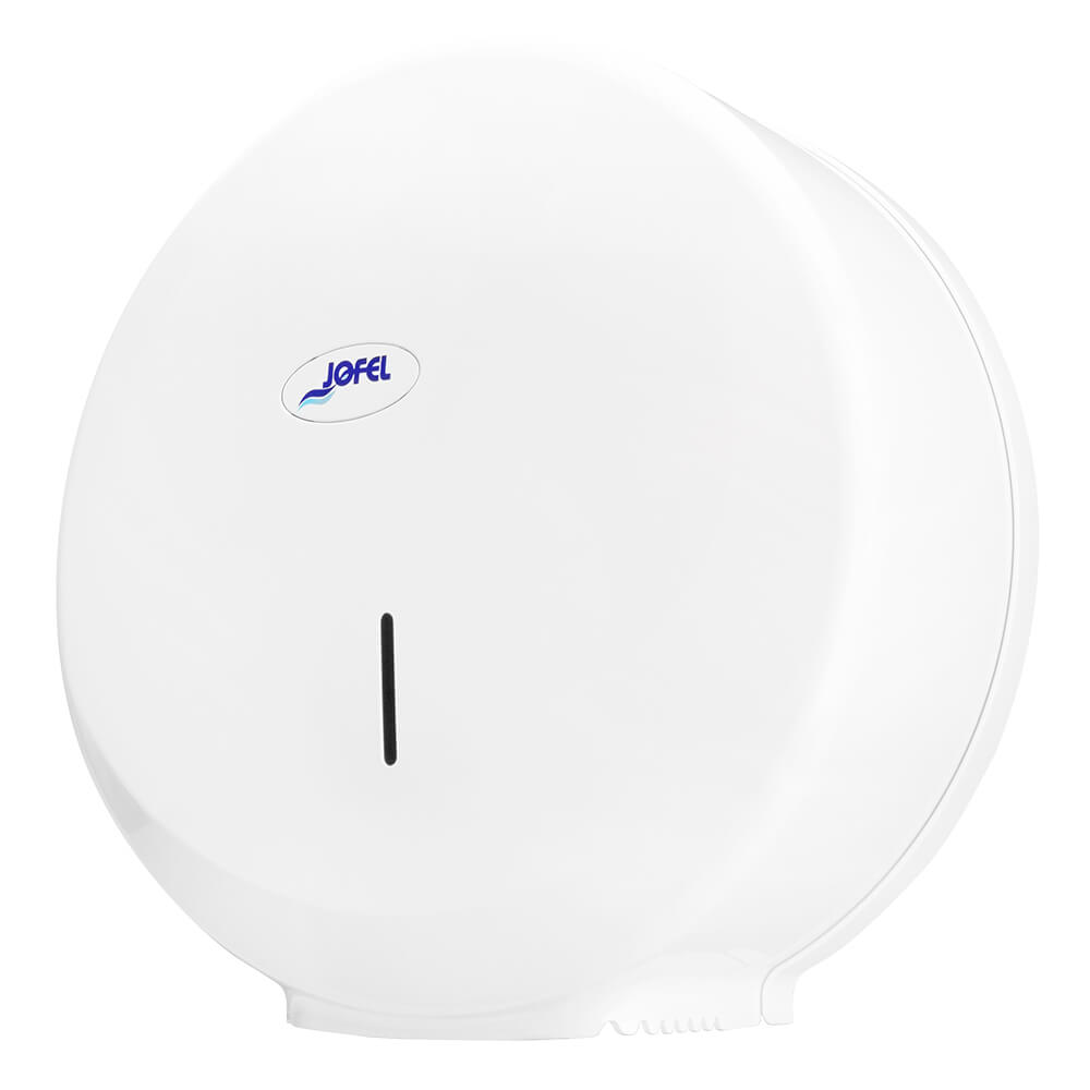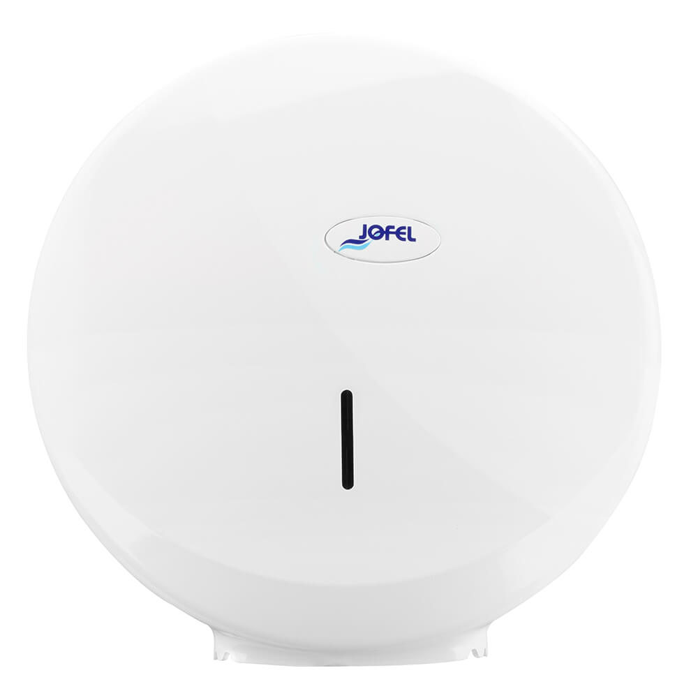Dispensador de papel en rollo, fabricado en ABS con sistema de bloqueo con llave. Cuenta con ranura en el centro para ver consumo de papel y freno de papel para evitar el desperdicio del mismo.