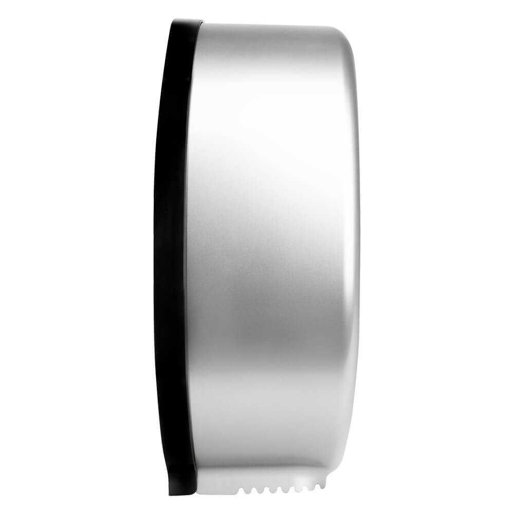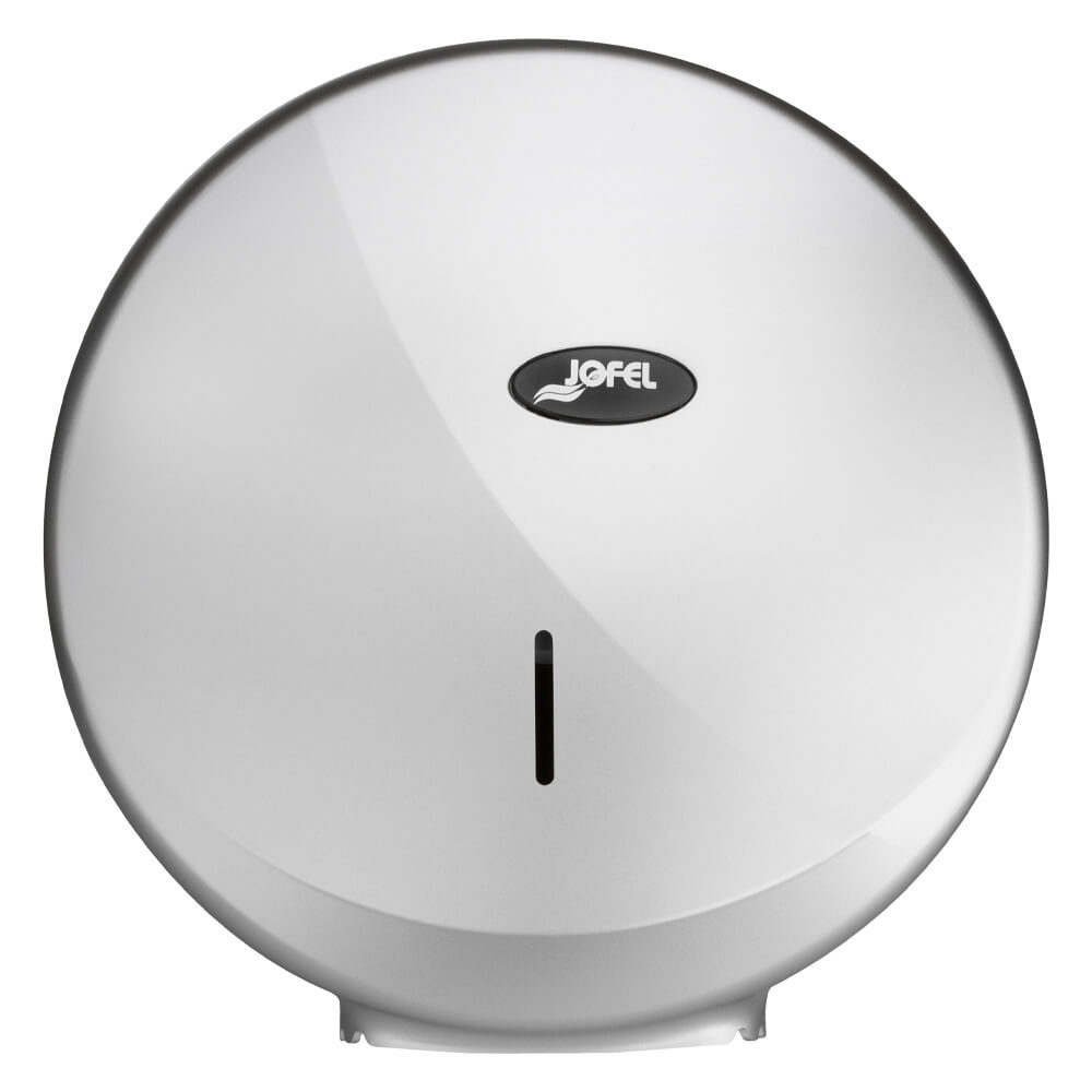 Portarrollos para colocar un rollo de papel. Tapa en color silver, en el centro tiene una ranura para ver consumo de papel. Recomendado para W.C. públicos.