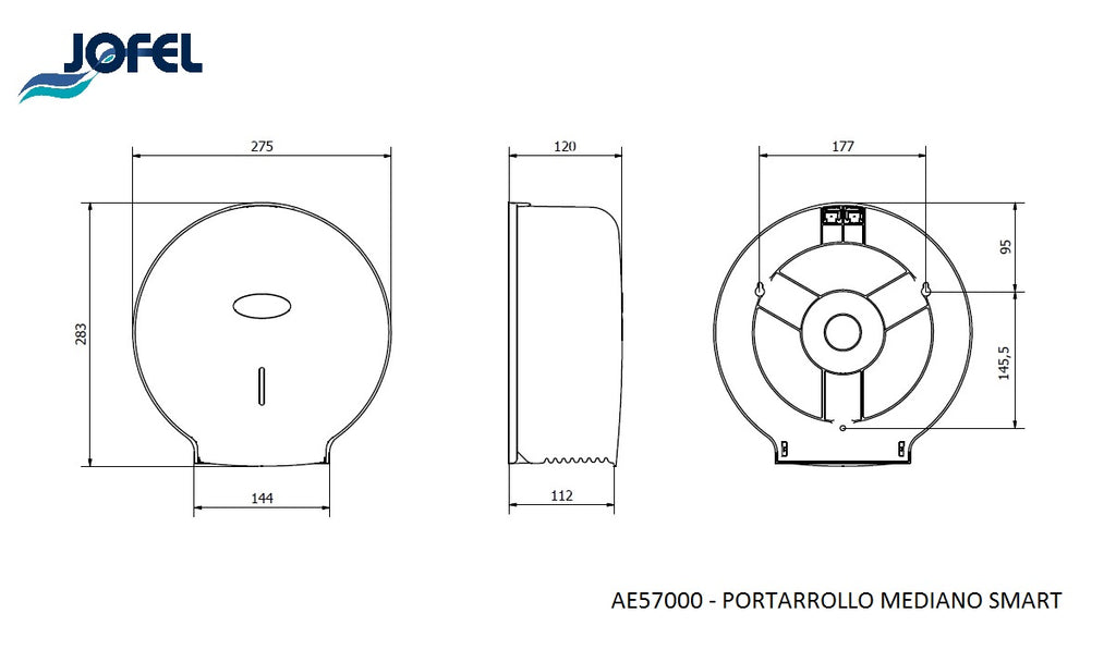 Portarrollo para colocar un rollo de papel. Tapa con ranura en el centro para ver consumo de papel.