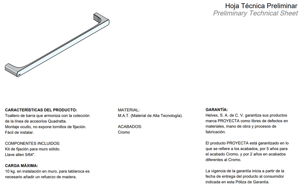 Toallero de barra que armoniza con la colección de la línea de acceorios Quadratta.
