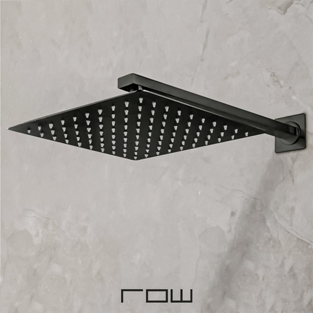 Regadera Cuadrada con Brazo Negro Mate ROW Tecnobath TB41.902NEGRO