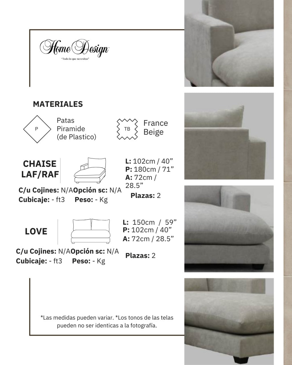 MATERIALES: patas piramide (de plástico) y textil France Beige.