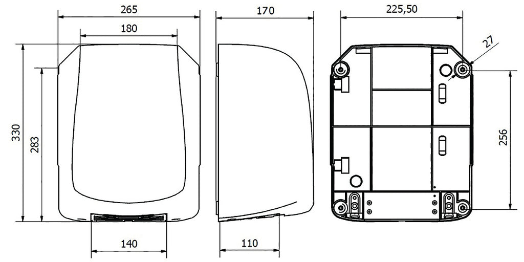 Tapa blanca fabricada en ABS. Componentes internos de ABS+PC. Cuenta con filtro standard para polvo y partículas. Alta eficiencia y economía de consumo.