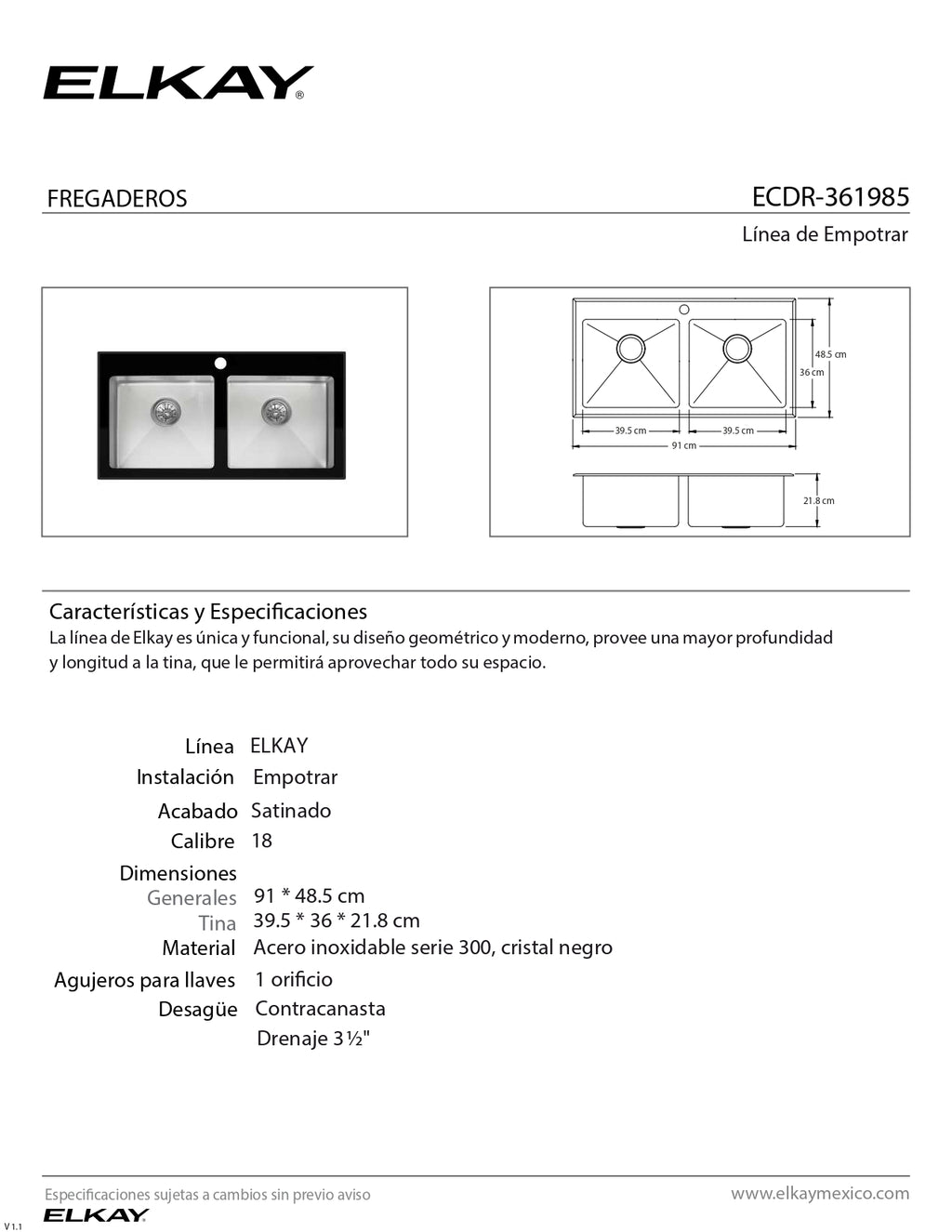 Esta tarja de acero inoxidable de doble tina Elkay para cocina es la opción perfecta para aquellos que buscan mejorar su cocina. Cuenta con una tina doble que permite el lavado y enjuague simultáneos de utensilios de cocina y una construcción de acero inoxidable duradera que garantiza una larga vida útil. Aumente su eficiencia en la cocina con esta tarja de alta calidad.