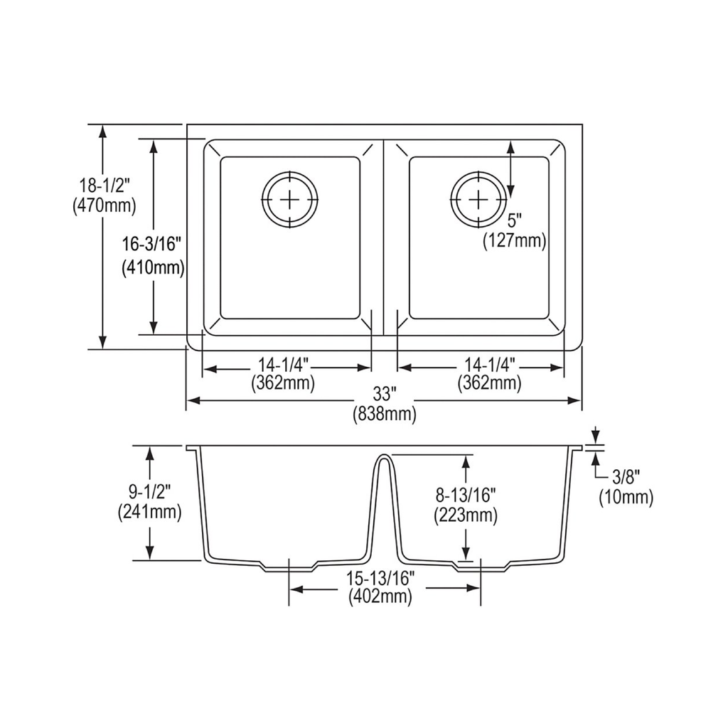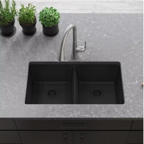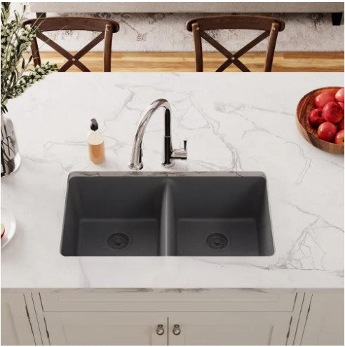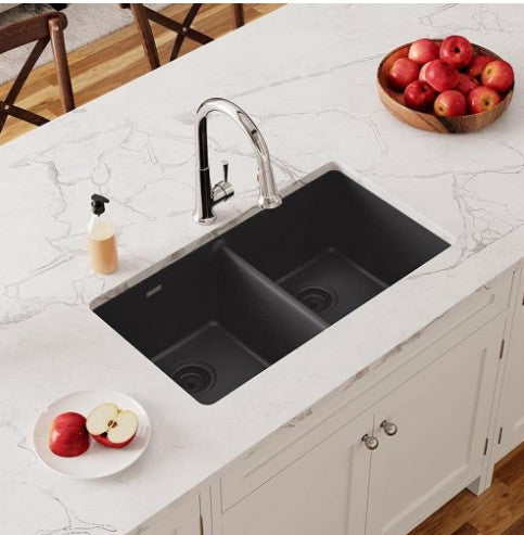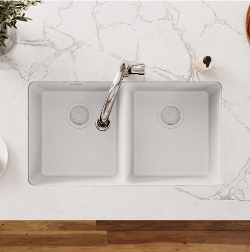 Tarja de cuarzo de alta calidad, doble tina de gran profundidad, instalación de empotrar