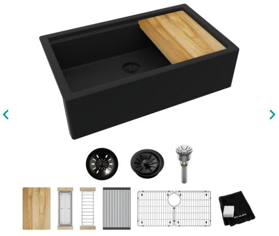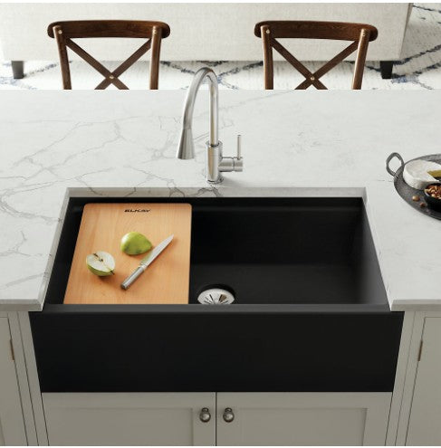 Tarja de cuarzo de alta calidad, tina de gran profundidad, instalación farmhouse.