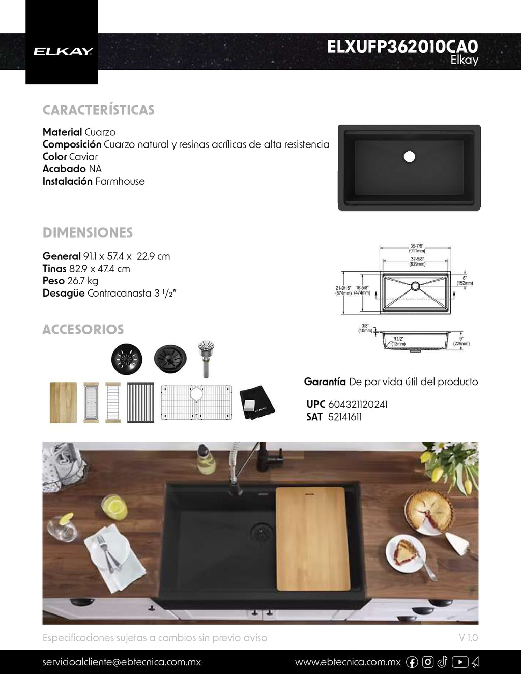 La tarja ELKAY ELXUFP362010CA0 en color caviar es la opción ideal para tu cocina. Con su diseño elegante y resistente, esta tarja de alta calidad es perfecta para cualquier cocina moderna. Su acabado en color caviar añade un toque de sofisticación y su durabilidad garantiza una larga vida útil. ¡Haz que tu cocina sea la envidia de todos con la tarja ELKAY ELXUFP362010CA0!