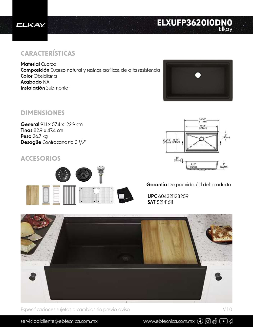 Con su elegante diseño de color obsidiana, la tarja ELKAY ELXUFP362010DN0 es una excelente elección para agregar un toque de sofisticación a su cocina. Fabricada con materiales duraderos, esta tarja ofrece una gran resistencia a manchas y arañazos. ¡La elección perfecta para una cocina moderna y funcional!