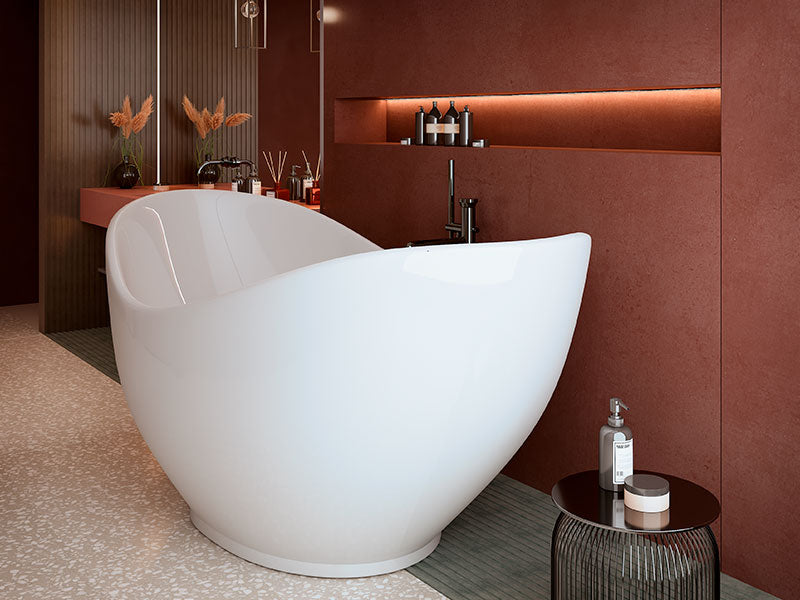Elegante bañera, de forma curva y línea suave. Ideal para el descanso y placer que ofrece una bañera.